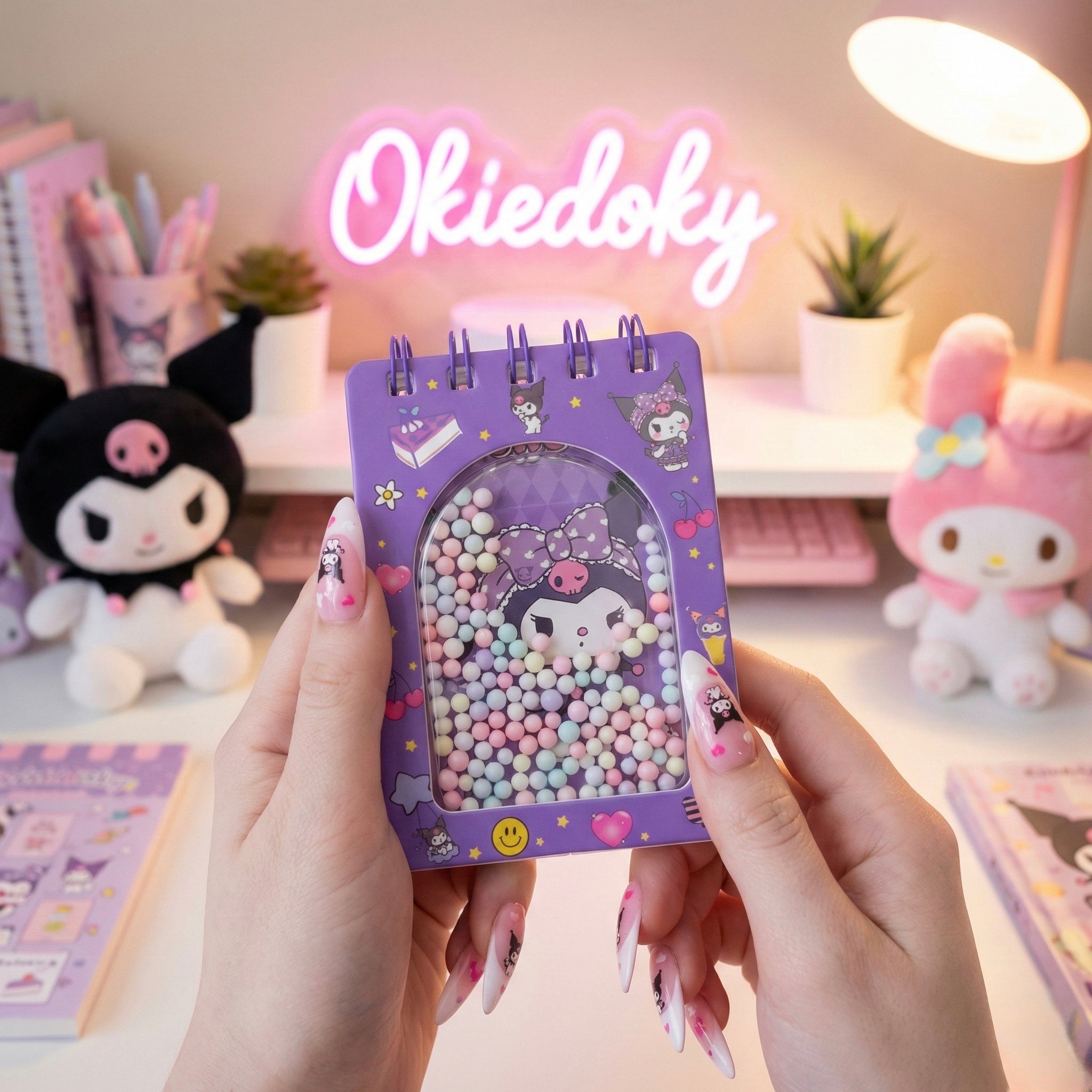 Designed with a transparent shaker window filled with pastel moving beads, this notebook is playful, interactive, and absolutely irresistible for kawaii lovers.