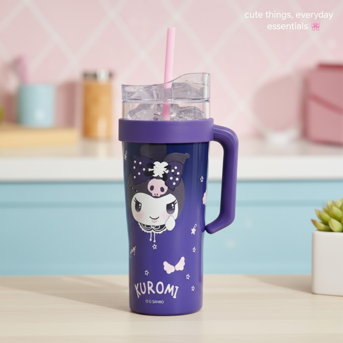 Whether you’re a Sanrio superfan, kawaii lifestyle lover, or just looking for a reusable cup that reflects your personality, this Kuromi tumbler with handle and straw is your perfect daily companion.