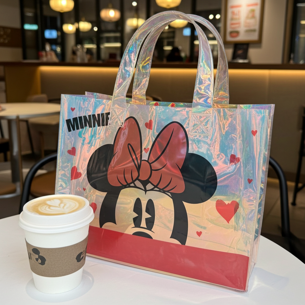 Add a magical touch to your look with this holographic Minnie Mouse tote bag – the ultimate accessory for every Disney lover and fashion enthusiast! Featuring an adorable Minnie Mouse design with heart details, this shiny and stylish tote is perfect for everyday use, gifting, or simply flaunting your love for all things cute. 💖