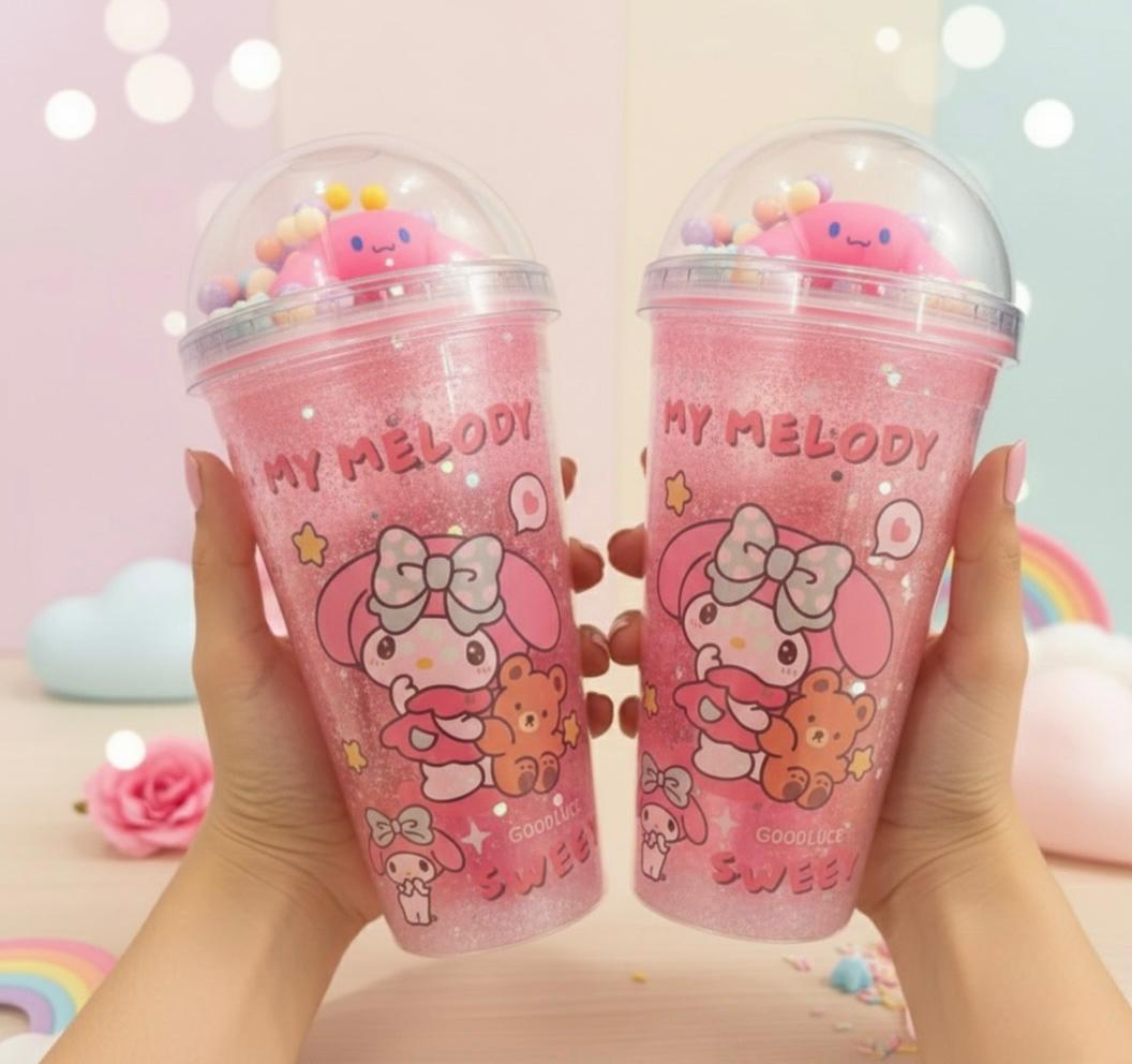 Charming Figure Topper: The dome-shaped lid is topped with an adorable My Melody-style figure nestled among beads, turning your cup into a decorative item you'll love showing off.