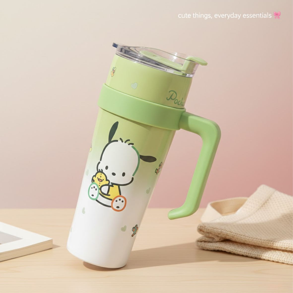 Adorable Pochacco Design – Bright pastel green finish with a playful cartoon print that kawaii fans will love.
