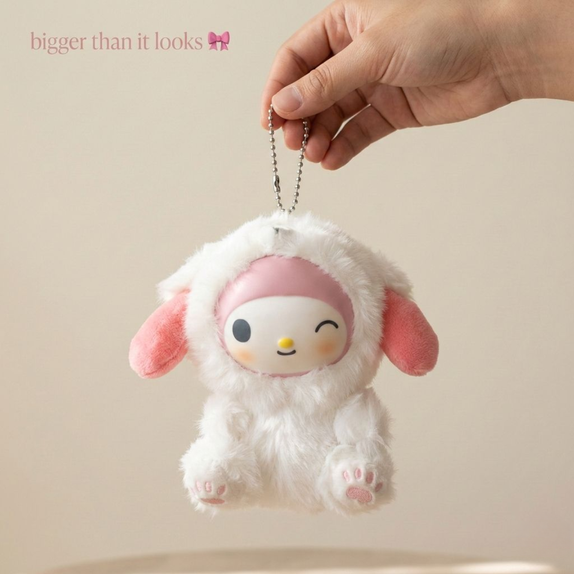 Featuring the beloved My Melody from Sanrio in a larger-than-life plush form, this bag charm brings sweet, comforting vibes to your everyday style ππ«
