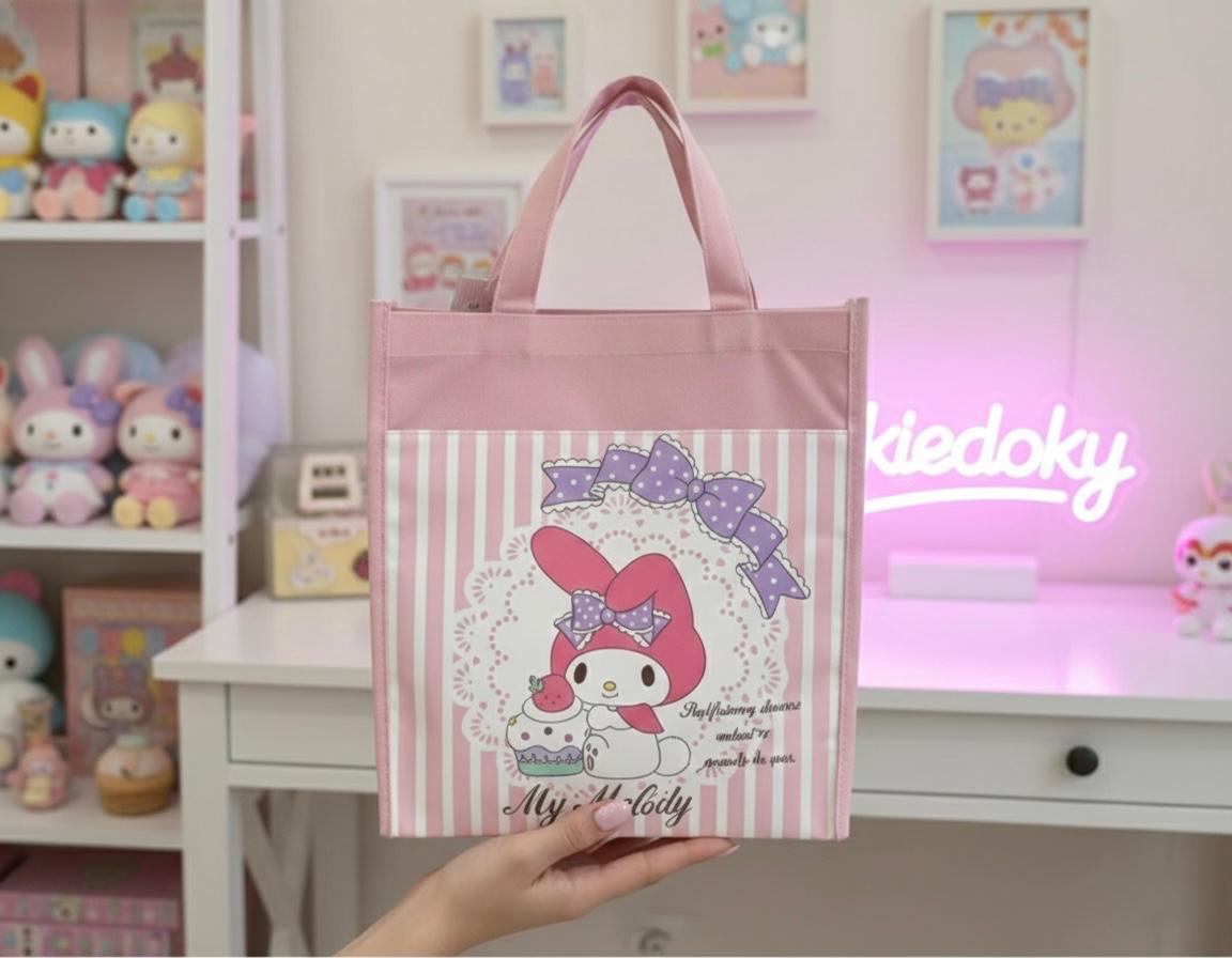 - DESIGN FEATURES: Adorable My Melody-themed canvas tote bag featuring cute printed designs, including Cinnamoroll