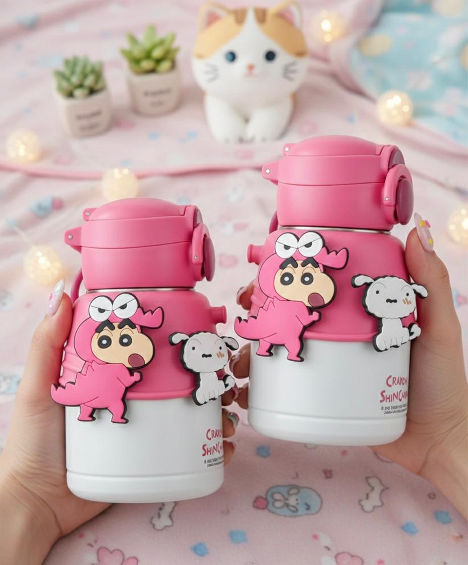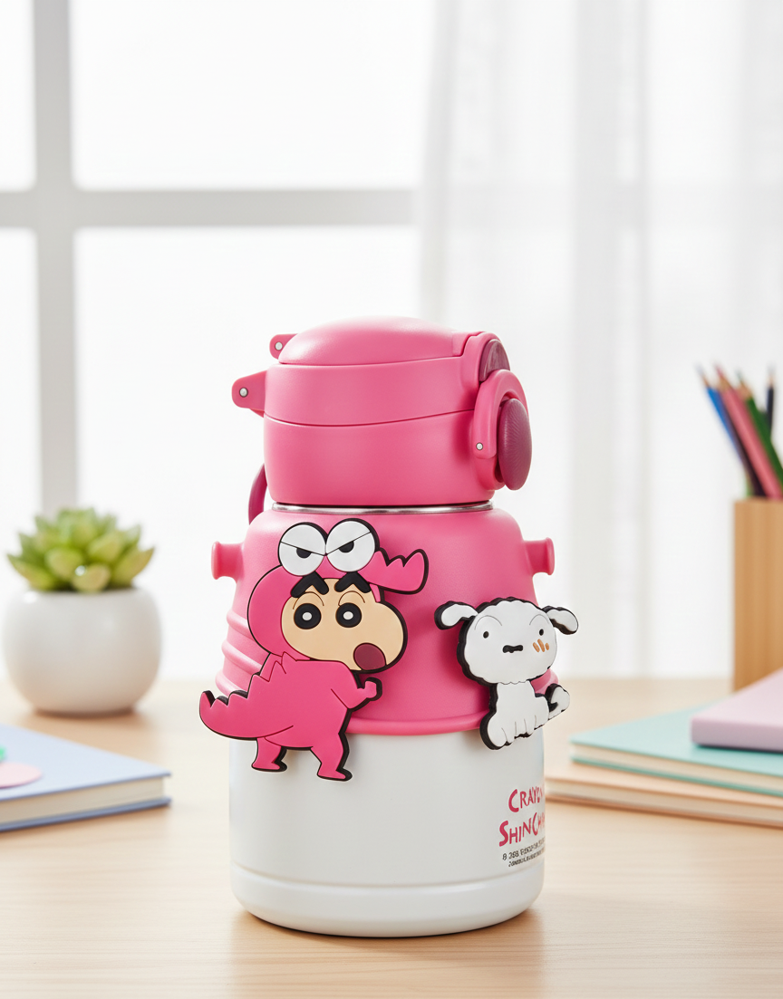 A: This insulated bottle combines long-lasting temperature control with a cute Shinchan-themed design kids adore. Durable, safe, and easy to carry, it’s the perfect everyday essential for school, travel, or outdoor fun — loved by little Shinchan fans who want both cool style and reliable hydration.