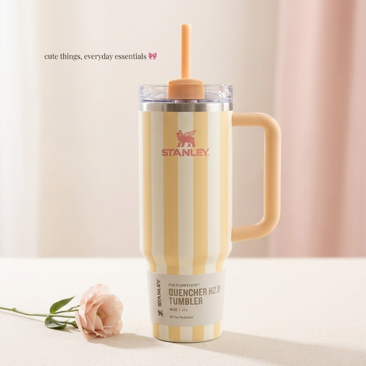 This cream-and-yellow Stanley Quencher is the perfect hydration accessory for those who love timeless neutrals with a playful twist.